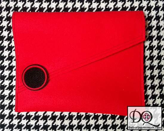 At the CHA (Craft and Hobby) trade show the Kunin Group introduced their new felt, Eco-fi Plus™. “Eco-fi Plus is an 8-ounce premium felt that uses natural silver and copper cleansing ions to resist mold, mildew, and odor and is made from recycled plastic bottles.” This luxury weight of felt is ideal for stylish wearables and accessories. Available in ten rich colors, I had to choose the gorgeous red to create a sturdy and stylish iPad case.