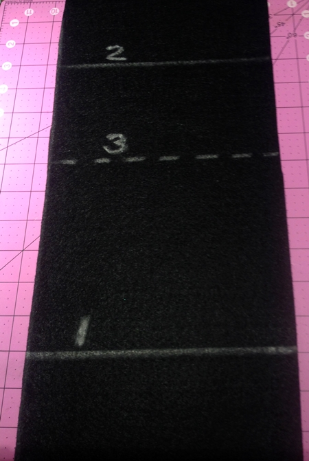 2. Fold one end of felt over 12” matching side seams. Top stitch or glue on both sides to create pocket.