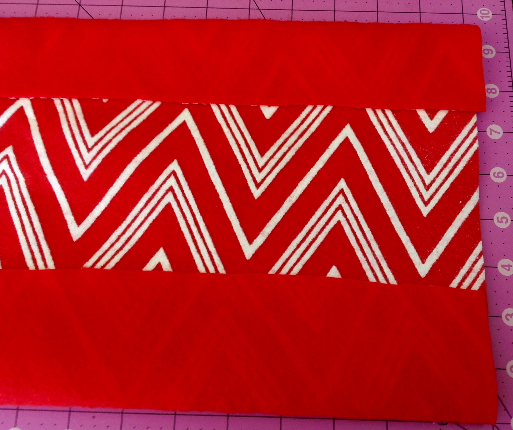 2. Along both top and bottom edges turn felt up 2”. Glue.