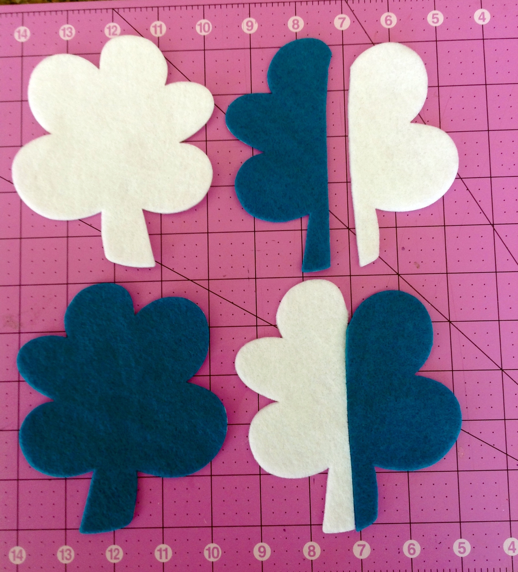 1. Cut one 12” by 24” piece of felt for pot wrap. From left over piece die cut a leaf. Die cut a leaf from white.